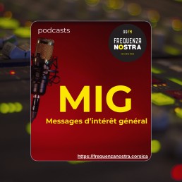 Les messages d'intérêt général ont pour vocation la promotion des comportements ou causes considérés comme répondant à l'intérêt général. Les MIGs (et/ou capsules audio) diffusés sur Frequenza Nostra sont réalisés en collaboration avec nos partenaires associatifs et institutionnels. Ils visent notamment à prévenir et à orienter le grand public.